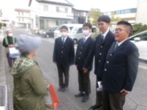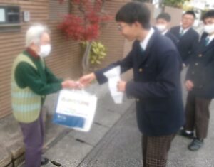 11月26日(水)、高等部の生徒会役員が「ありがとう訪問」を行いました。この訪問は、昨年度まで敬老の日に合わせて訪問活動を行っていましたが、名称を「ありがとう訪問」と改め、日頃から本校生徒を温かく見守ってくださっている地域の高齢者の方々へ感謝の気持ちを直接お伝えするために行われています。