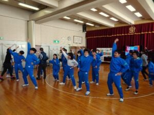 お楽しみ会の最後は、1年生からの余興!生徒たちの声から誕生した “1年生Timelesz” の登場に会場が湧きました!みんなで頑張って練習したダンスを披露し、先輩たちも一緒に踊りました。