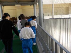 小学部:「6年生 生活単元学習 校内を探検しよう」 Posted on 2026年4月22日 by nisisien01 カテゴリー: 今日の西っこ, 小学部 4月になり、みんなの使用する教室が変わったことから、「他の教室も変わっているかもしれないね。みんなで確かめに行こう。」ということで、校内の探検に行きました。 教室を見つけるとワークシートにシールを貼って、学年の教室が変わっていることや保健室や体育館は変わっていないことを発見し、見つけたことを発表し合うことができました。