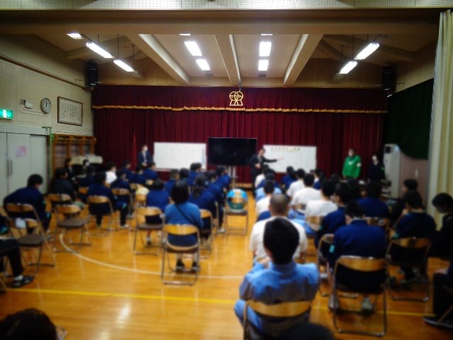11月12日(水)、薬物の摂取による心身へ与える影響や、薬の正しい使い方を知るために、岡山西警察署 生活安全課、スクールサポーター、学校薬剤師の方々を講師にお迎えして、薬物乱用防止教室が開かれました。