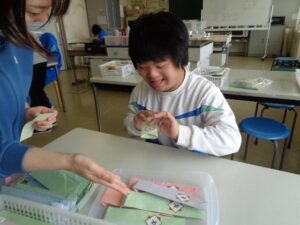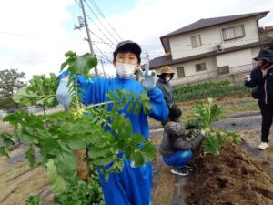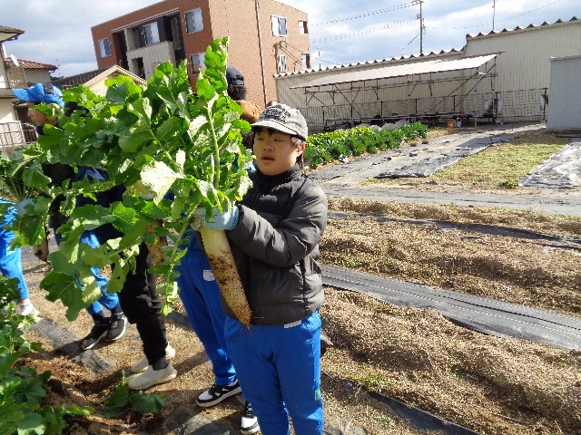 中学部:「作業学習 西支援祭に向けて」 Posted on 2025年12月5日 by nisisien01 カテゴリー: 中学部, 今日の西っこ 12月6日(土)に行われる西支援祭での販売に向けた準備を、作業学習の時間に頑張っています。 手工芸班では、紙をちぎったり折ったりして、ポチ袋、祝い箸やカレンダーなどを制作しています。 園芸班は、大根を収穫しに、農場へ行きました。両手でまっすぐ、たくさん収穫することができました。 西支援祭当日が今からとても楽しみです。