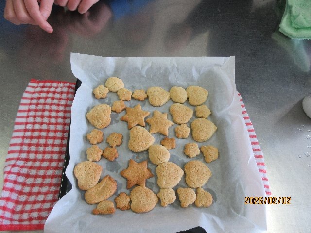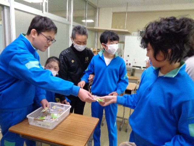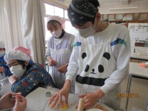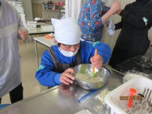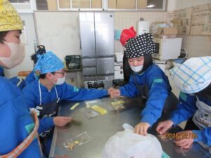 中学部:「生活単元学習 おもてなし」 Posted on 2026年2月20日 by nisisien01 カテゴリー: 中学部, 今日の西っこ 1月後半~2月にかけて、生活の単元で「おもてなし」の活動をしました。 中学部の1年生、3年生、お世話になった先生に、なにかおもてなしができないかなということで、子どもたちと相談しながら決めていきました。クッキーを作ることに決まり、買い物に行ったりポスターやチケットを作ったりと、役割に分かれて準備を進めました。 焼けたクッキーを袋に入れてかわいくラッピングし、渡しに行くことができました。 ありがとうの気持ちを込めて作ったクッキー。 喜んでもらえて嬉しかったです。