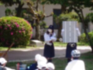 4月21日(火)、岡山市役所生活安全課 交通安全防犯室から交通指導員2名の方を講師としてお招きし、交通安全教室を開催しました。